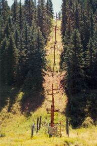 | Dates Operated: Never Operated Area Stats: ~2 runs Facilities: None built for the ski area but Alpine Lakes is a RV resort. Lifts: 1 J-Bar History: According the staff at Alpine Lakes, the ski area never opened because of high insurance premiums. This was because Alpine Lakes was developed during the same year as the tragic Teller lift accident. The area has since been idle with the J-Bar fully intact! Directions: From Divide take to the first fork in the road and go right. From there make a right on Omar Road and Alpine Lakes is at the end of the road. Please Note: This resort is closed in the winter! |