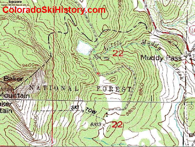 | Operation Dates: 1950 - 1953 Lifts: 1 tow (500 feet long) with an electric engine Facilities: warming hut History: This is the only ski area in Colorado to close due to too much snow! The area was located at Muddy Pass, right past Rabbit Ears Pass on US 40 going to Steamboat (or 27 miles north of Kremmling). The area offered a $70 lifetime season pass, which did not pay off for buyers. Snow was so abundant at this area that their plow truck had a difficult time keeping the access road plowed. Attendance was also low during their operation period. |
