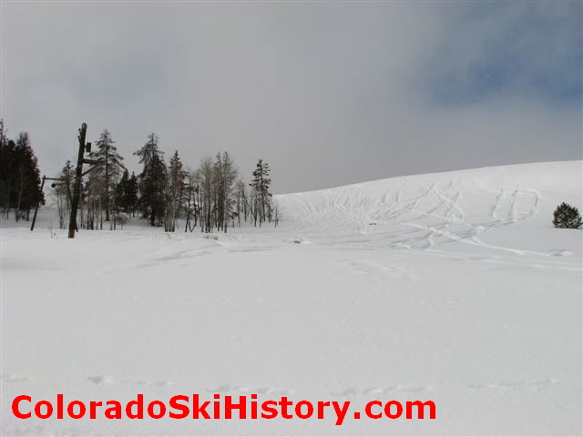 Two rope tow towers are still in place on the left side of the hill. The tow's