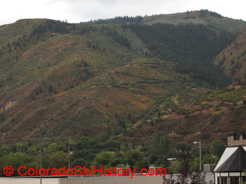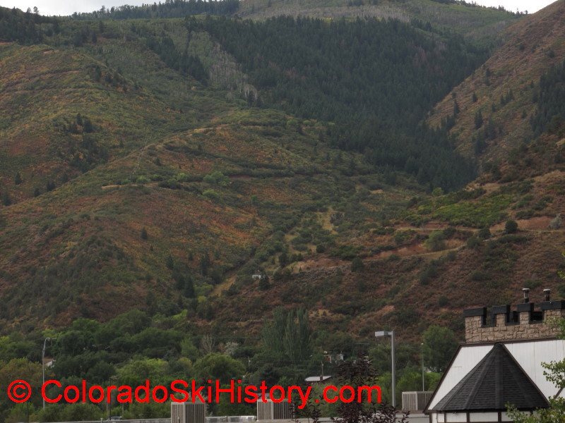 The town of Glenwood is in the foreground of this picture, while the ski lift line is on the mountain behind. |